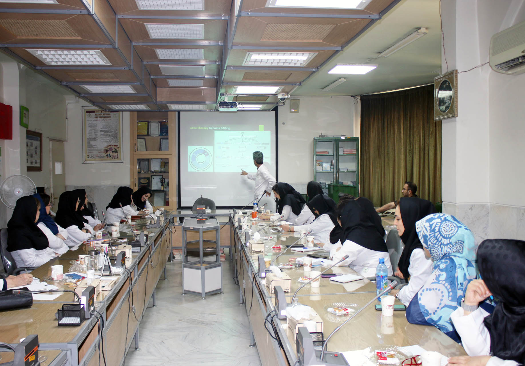 دکتر کاردر، در مورد مطالعات ژن درمانی در بیماریهای نقص ایمنی اولیه و کارآزماییهای بالینی مرتبط با آن صحبت کرد و سپس در مورد طرح ملی نیماد مرکز در مورد روند انجام طرح ژن درمانی بیماران نقص ایمنی اولیه SCID-RAG1/2 در مرکز تحقیقات ایمونولوژی، آسم و آلرژی،گزارش داد.